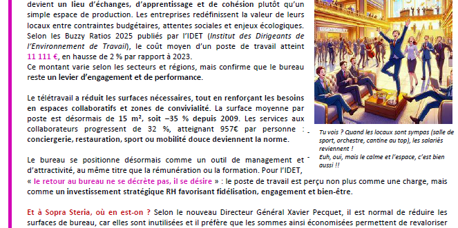Avec la généralisation récente du télétravail, on aurait pu imaginer que le coût par salarié d’un poste de travail baisse significativement Qu’en est il ?