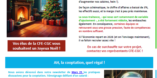 Vos élus de la CFE-CGC vous souhaitent un Joyeux Noël !